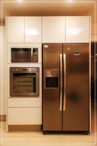 Fridge positioning – When I am designing a kitchen’s layout and I am positioning the fridge, I will always (if possible) position the fridge up against a wall or between cabinetry i.e. Pantry and Oven Tower.