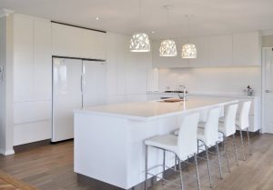 Now before all the colours, materials & appliance selections I believe a good starting point is to ask yourself are you the type of person to entertain guests around your kitchen while you are preparing meals or even having a couple of wines with your friends (rather than say in the outside alfresco, lounge or dining). The reason I ask this is if you answered yes, you are going to want a breakfast bar (island bench) so that your guests can sit around the bench top away from potential hot areas i.e. hotplates and ovens whilst you are creating the magic in the kitchen. Also, if you have a window in your kitchen, I would position the breakfast bar facing the window (if possible) so you can look out the window whilst you are eating your breakfast. Breakfast bars are great for prep areas as there will be ample bench space and you can even get your sink positioned for cleaning veggies and dishes while you are preparing your meals.